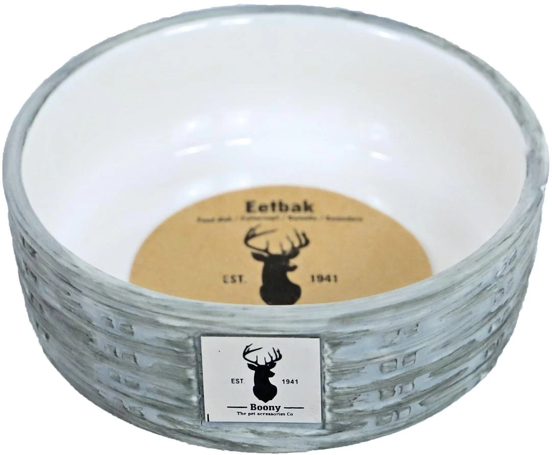De Boony Est 1941 voerbak steen wicker zal ieder huis nog een stukje stijvoller maken. Deze stenen eetbak is uitgevoerd in de kleur grey en lijkt op een rieten mand.