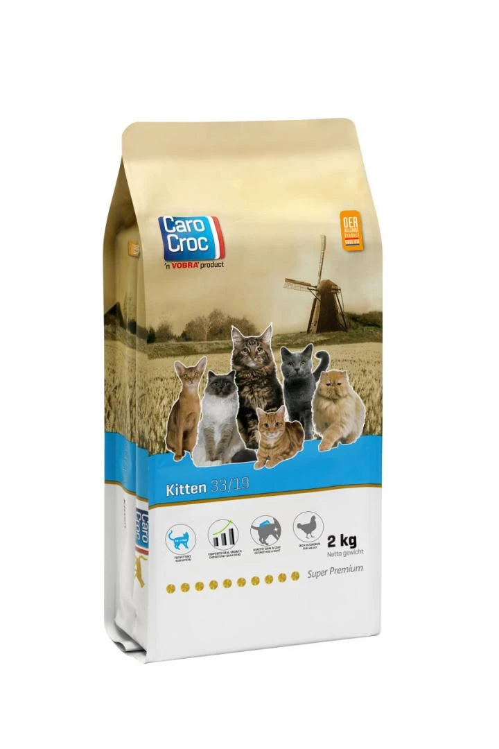 Vanaf de geboorte ontwikkelt jouw kitten zich volop. Daarom is een goede voeding juist in deze levensfase cruciaal voor een gezond en vitaal kattenleven. CaroCroc Kitten bevat een optimale verhouding omega-3- en -6 vetzuren voor een gezonde huid en vacht. De uitgebalanceerde samenstelling zorgt voor een optimale ontwikkeling van je kat en legt daarmee een stevige basis voor een gezond en vitaal kattenleven.