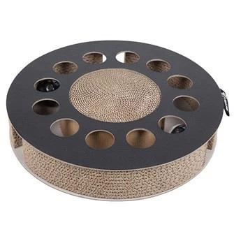 Het draait rond, maakt geluid en het is gemaakt van karton, kortom alle ingrediënten voor jouw kat om er de hele dag mee te spelen! Waar het duurzame golfkarton jouw kat helpt om zijn nagels in goede conditie te houden, is het meest opwindende deel van deze Whirl binnenin te vinden: een onweerstaanbaar balletje gevuld met een rinkelend belletje. Jouw kat zal zijn uiterste best doen om dit balletje te pakken te krijgen. Door middel van de 12 ronde openingen bovenop de Whirl kan jouw kat zijn pootjes door de gaten steken om het balletje te bereiken.