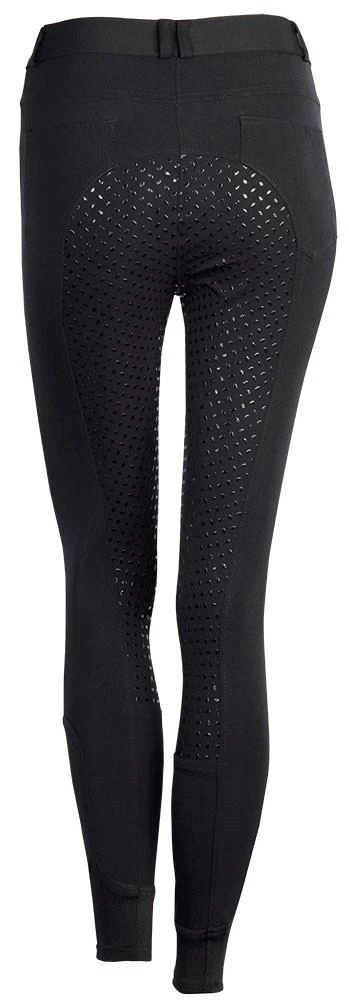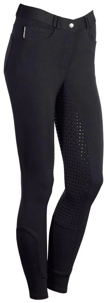 De Harry’s Horse damesrijbroek Redwood met rondgenaaid zitvlak voorzien van siliconen print voor extra grip in het zadel, twee kontzakken, twee steekzakken en een schuifknoopsluiting en rits, lycra flex legs.