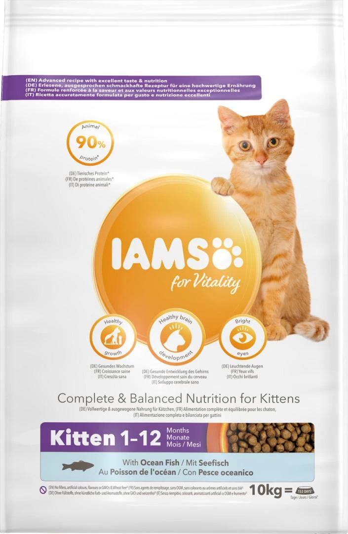 IAMS Kattenvoer Kitten Ocean Fish is een 100% complete en uitgebalanceerde specialistische voeding die uw huisdier op een smakelijke manier ondersteunt in zijn ontwikkeling.