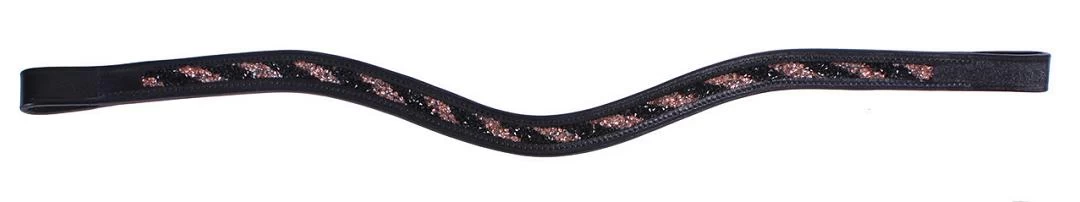 De QHP frontriem Lizzie is een zwart leren frontriem met wave vorm die is afgewerkt met strass stenen inzet met twee kleuren in diagonaal gedraaid patroon.