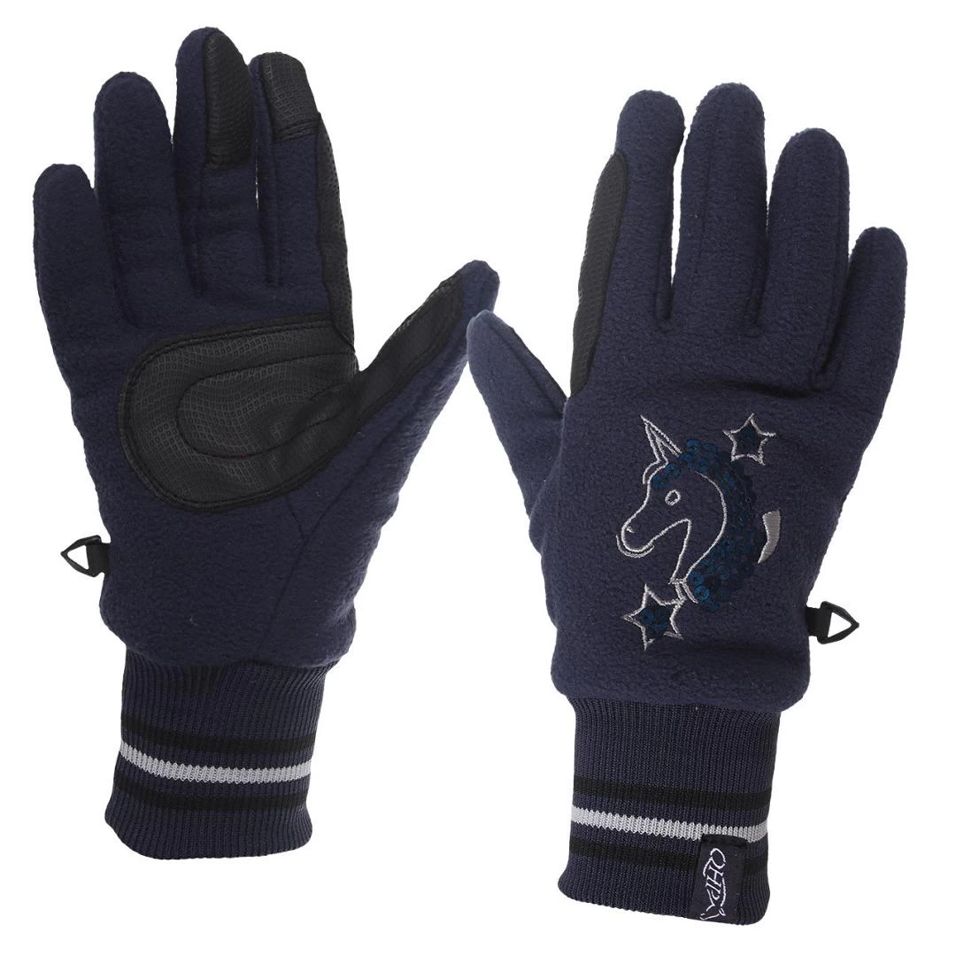 De QHP Kinderhandschoen Leyla is lekker warm en door de versteviging met kunstleer zijn ze erg slijtvast. Het leuke borduursel met pailletten op de rug van de hand en de gekleurde strepen op het elastische manchet geven deze kinderhandschoenen een vrolijke uitstraling.