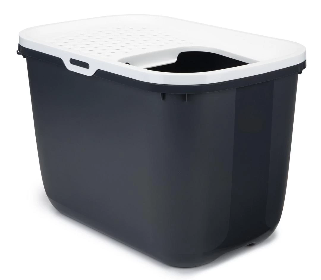 De Savic Hop In kattenbak is net even wat anders als andere kattenbakken. Deze kattenbak heeft namelijk de ingang aan de bovenkant, zodat katten verscholen hun behoefte kunnen doen en de kattenbakvulling niet gemakkelijk de bak uit kan vallen. Bovendien is de Hop In kattenbak ook onbereikbaar voor honden en kruipende kinderen.