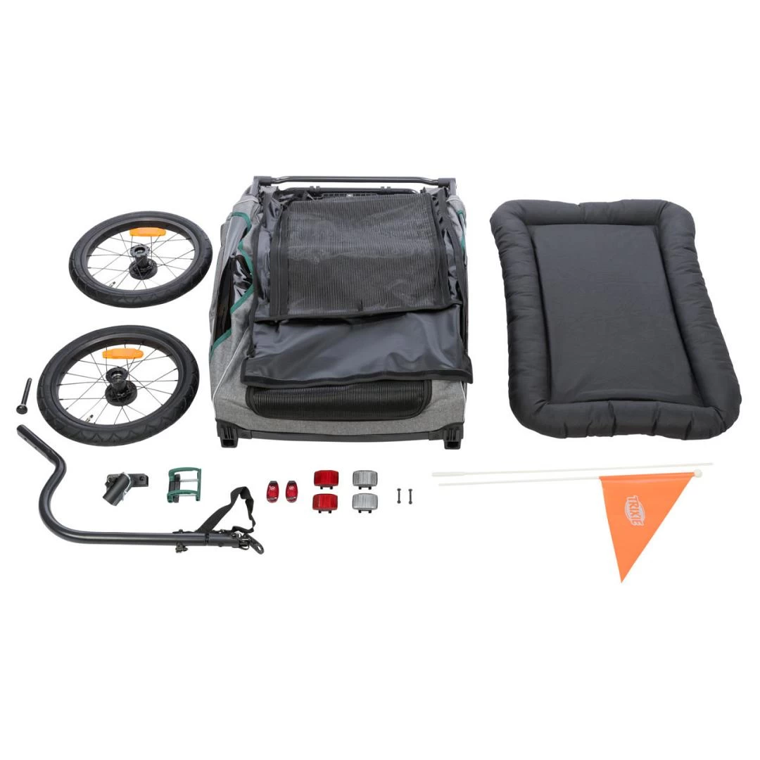 Een andere innovatieve functie van deze hondenfietskar is het eenvoudige ombouwsysteem van aanhanger naar buggy. Dankzij het nieuwe klikslot kun je snel en gemakkelijk overschakelen naar een buggy, waardoor je de flexibiliteit hebt om te wandelen of te joggen met je hond wanneer dat nodig is.