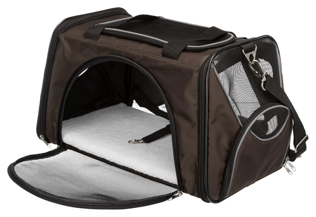 De TRIXIE hondentas Joe is een hoge kwaliteit transporttas voor katten en kleine honden tot 10 kg. De tas is extreem sterk en vormvast. De tas heeft 3 openingen en is aan zij-, voor- en bovenkant te openen. Voldoende gaas-inzetstukjes voor een goede ventilatie. Met geintregeerde korthouder wat voorkomt dat je huisdier eruit kan springen. De tas is voorzien van een een inlegkussen met schapenvacht, deze mag gewassen worden in de wasmachine.